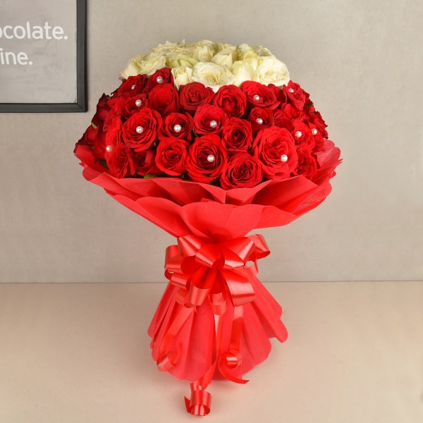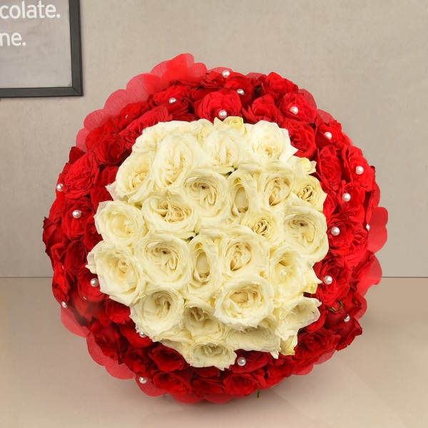 Amplify your love and make it grand with this splendid Red and White 100 Roses Bouquet. This over-the-top bouquet will easily let someone know how much they are loved. Love shouldn't be short of anything!