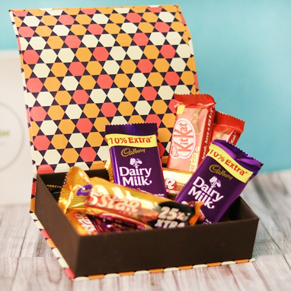 Bag appreciations from your loved ones by gifting them a sweet indulgence with this delicious chocolate box. It consists of four Five Star chocolate bars, four Dairy Milk chocolate bars, and three Kitkat chocolate bars. All these delicious chocolates come wrapped in our signature box to make your loved ones feel even special.