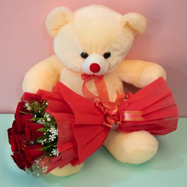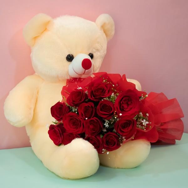 The perfect combo for people in love. Roses have worked wonders for romance, since the magical era of Romeo and Juliet, until 21st Century. A gorgeous bunch of 12 Red Roses and 18 Inches Skin Color Teddy is a perfect gift to send to your Special Someone and express your feelings.