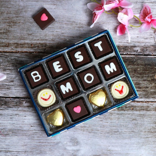 Here is the sweetest way to tell your mom that she is the best mom in this whole wide world. We present you this box of delicious handmade chocolates that spells out 'Best Mom'. Your mom will be in could nine to receive this delicious treat from you on her birthday or on Mother's Day.