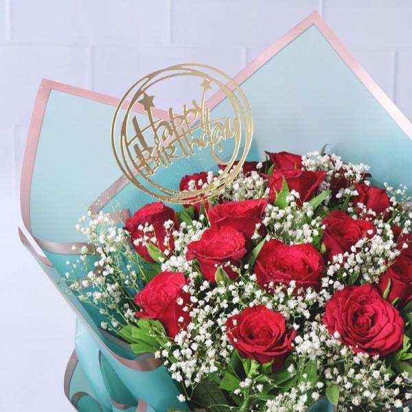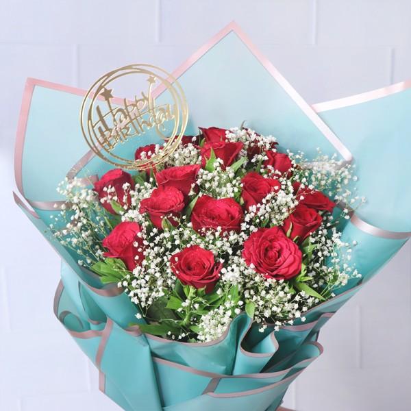 Celebrate a special day with the timeless charm of our Red Rose Birthday Surprise. Featuring 15 stunning red roses wrapped in premium signature packaging and adorned with a cheerful Happy Birthday topper, this bouquet is a heartfelt way to show your love and warm wishes on their big day.