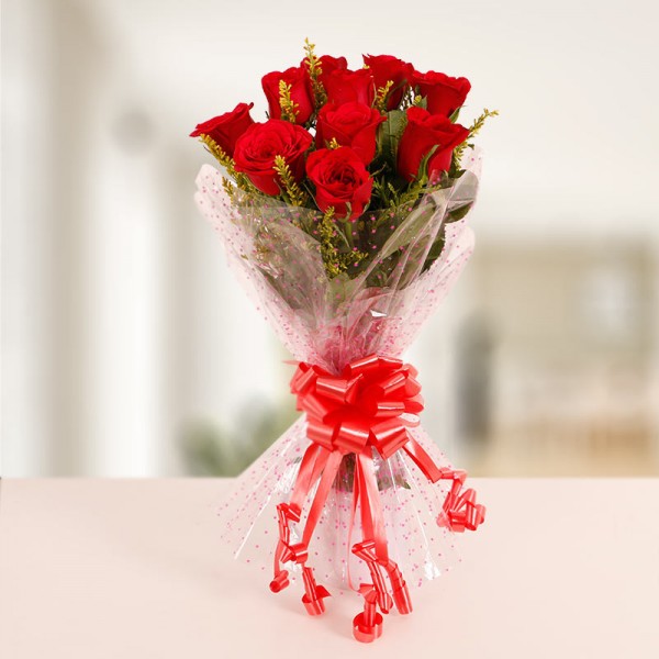 Red is the color of love. Celebrate the onset of love with our charming bouquet of 10 Red Roses wrapped in cellophane aptly conveying your feelings.