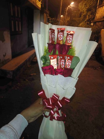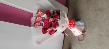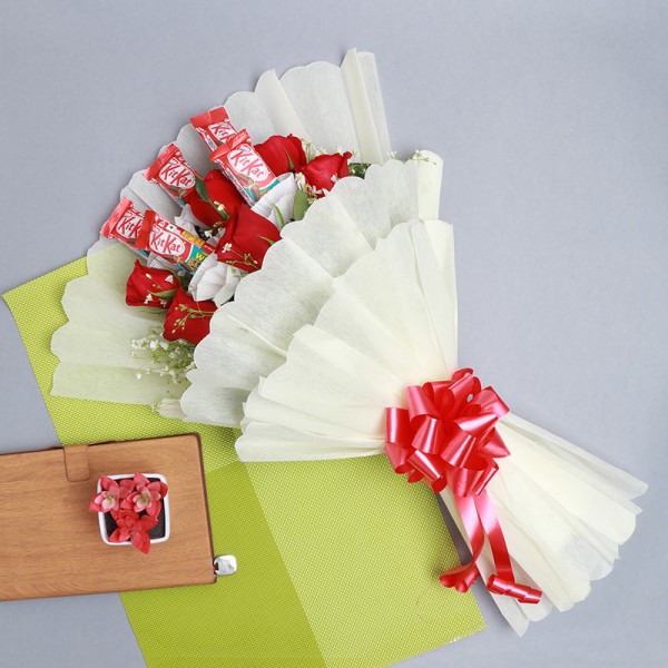 Fill your dear one’s day with sweetness and charm with this delightful combo of a bouquet of 6 Red Roses and 5 Kit-Kat chocolates. A perfect pick for Valentine’s Day, Anniversaries, Birthdays, or just to say “I Love You.”