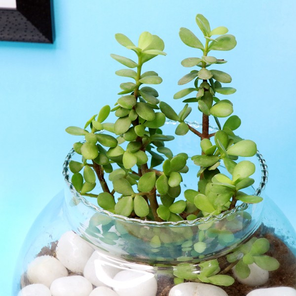 - Jade Plant in a Round Glass Vase
