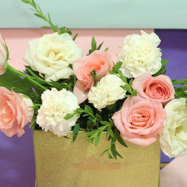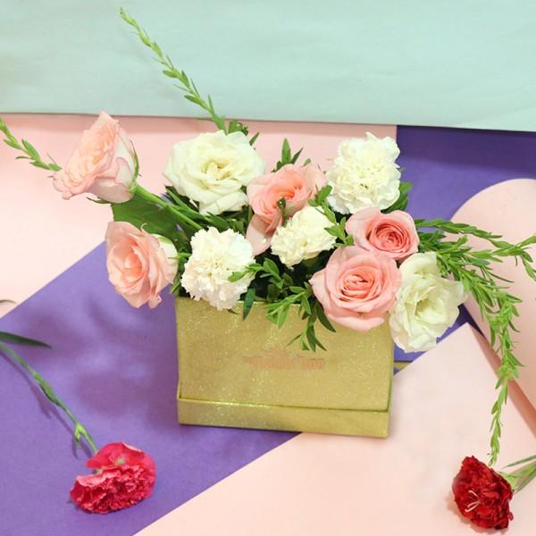 Product Contains: - Floral Gold Signature Box Arrangement of Roses and Carnations