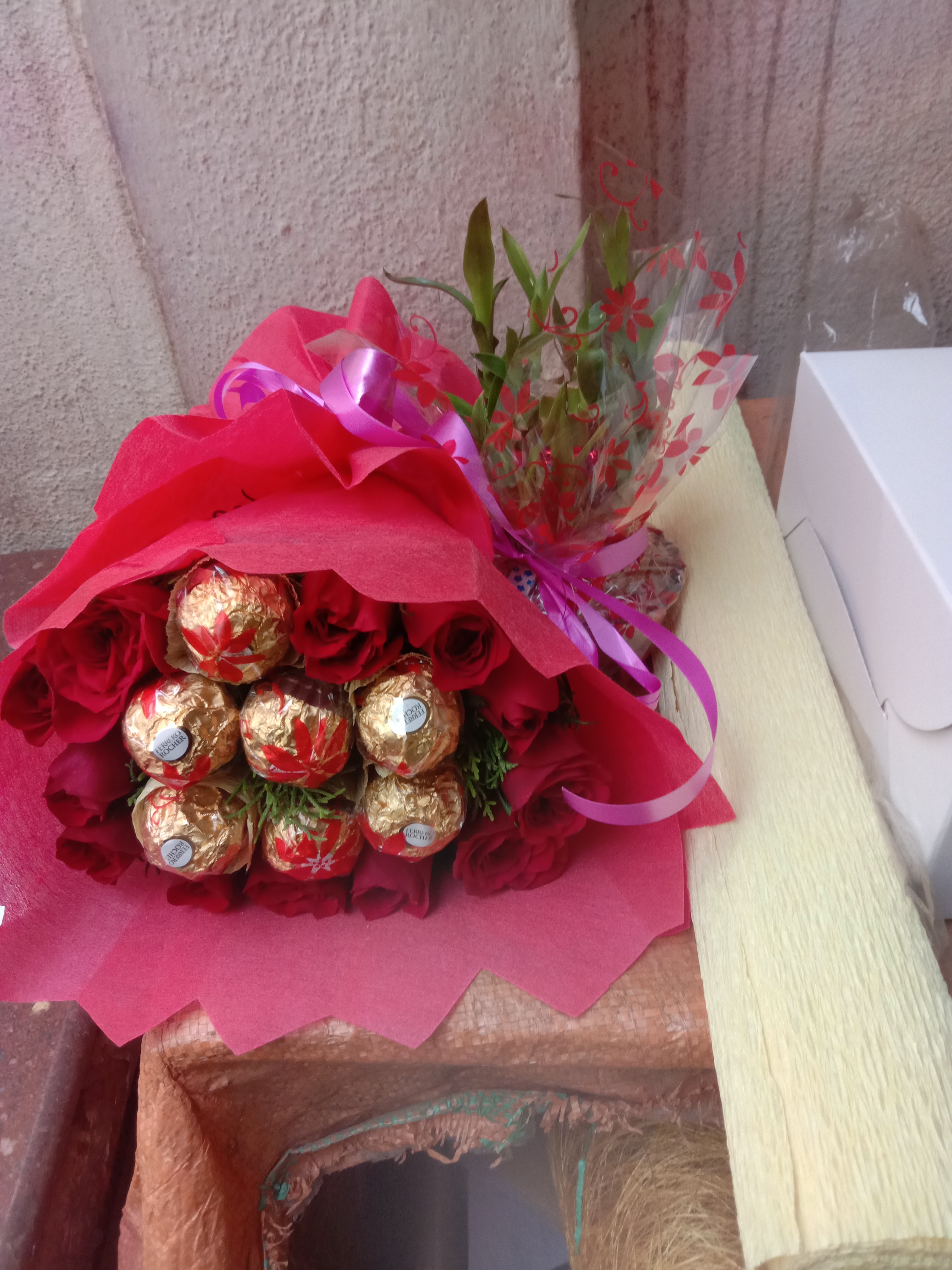 A concoction of flowers and chocolates are all you need to make someone happy. That is why we have made this beautiful bunch of 12 Red Roses and 7 Ferrero Rocher Chocolates for your beautiful people.
