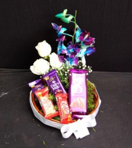 | Mixed Roses with Chocolate Cake | Floral Medley Hamper | Husband,Boyfriend | Under Rs.1049 | Express Delivery |