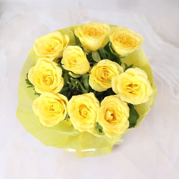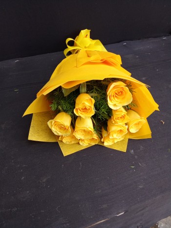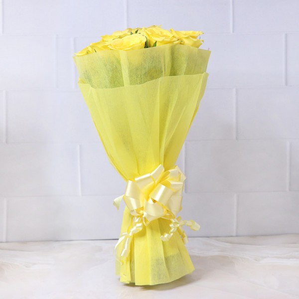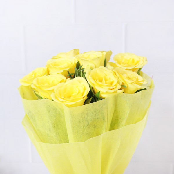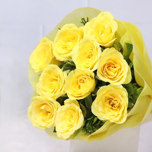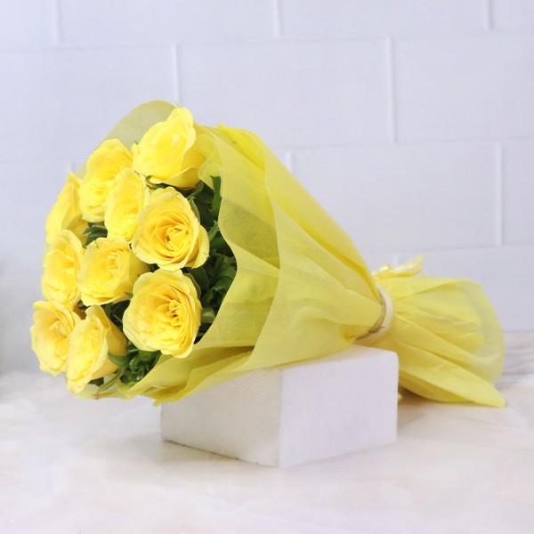 Express your emotions beautifully with this charming Bouquet of 10 Yellow Roses, elegantly wrapped in premium paper. A symbol of friendship, cheer, and new beginnings, these fresh blooms are perfect for birthdays, anniversaries, Friendship Day, housewarmings, or simply to brighten someone’s day. Delight your loved ones with this thoughtful floral surprise and receive endless appreciation every single time.