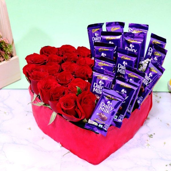 You want to think outside the box this Valentine's Day? Then ditch the bouquets and go for a heart-shaped chocolate and roses basket, that beholds your love within roses and melts the heart of your special one like the scrumptious chocolates included in this basket of love.