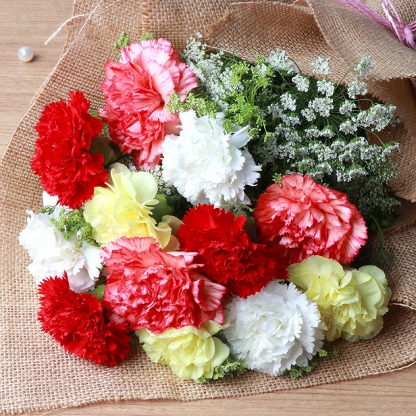 - One Bouquet of 12 Assorted Carnations (Yellow,White,Red and Pink)
