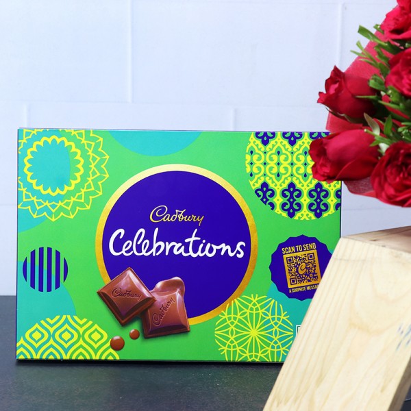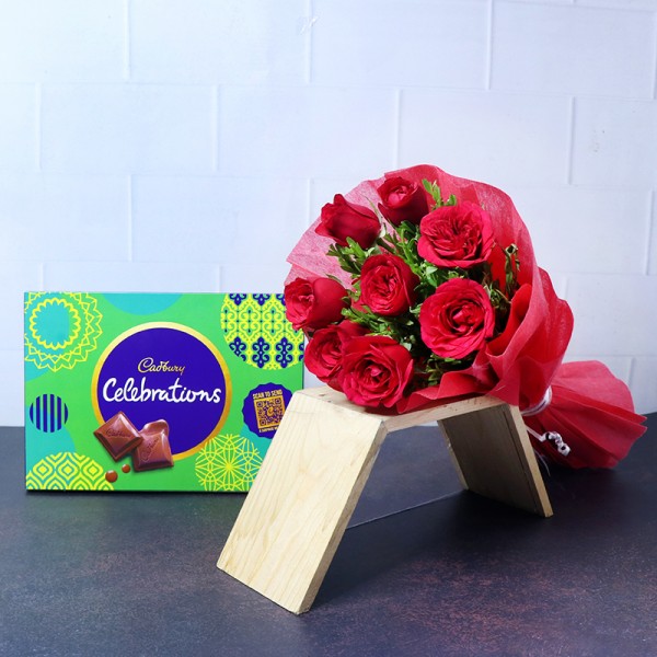 Red Roses are an epitome of love. Make someone feel the same affection by gifting them this Hamper that includes a bunch of 8 Hot Red Roses, wrapped in Cellophane and a Red Bow and a pack of Cadbury's Celebrations Chocolates.