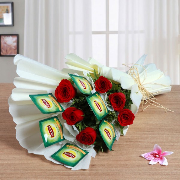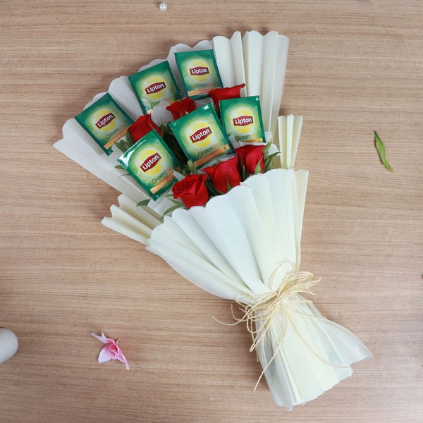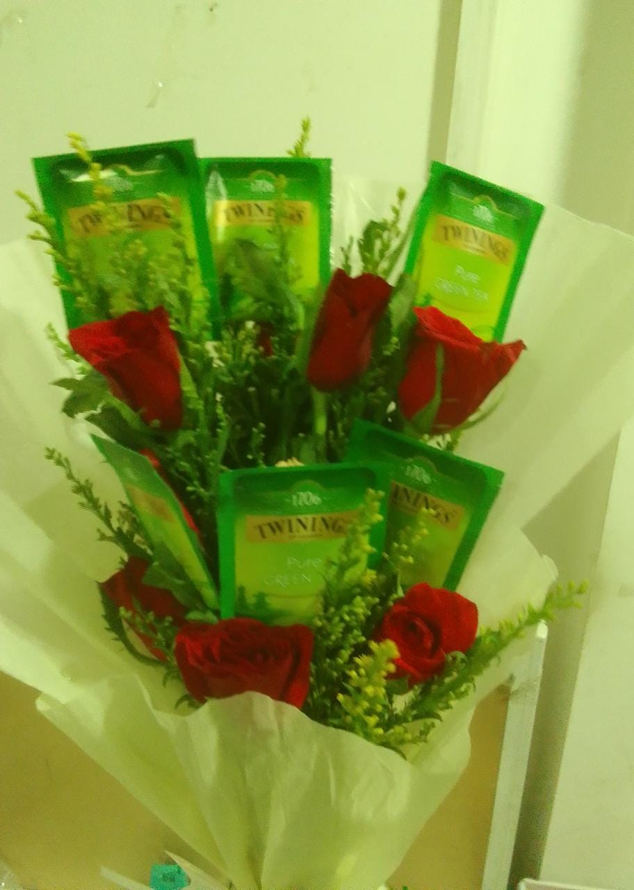 - One Bouquet of 6 Red Roses and 6 Sachet of Lipton Green Tea
