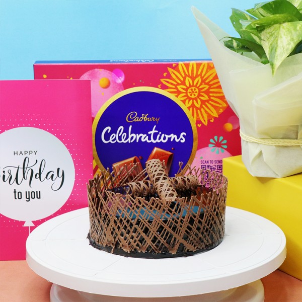 Product Contains : - Money Plant Wrapped with Tissue Paper in Plastic Pot - One Pack of Cadbury Celebration Chocolate (121 Gm) - Half Kg Chocolate Cream Cake - Happy Birthday Greeting Card