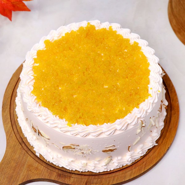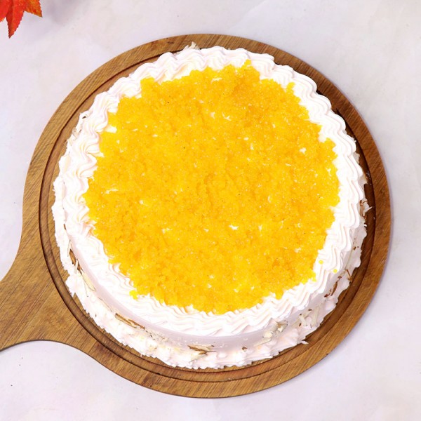 This Motichoor Laddu cake so fit for the golden Celebrations! A traditional pleasure that combines finely with a rich taste of cream and sweetness of Cake. This brilliant piece made of India’s famous Motichoor ladoo with a tint of orange tone and taste will let you go head over heels. This could be one of your prized possessions for a special occasion that you would like to own once...twice and infinity.