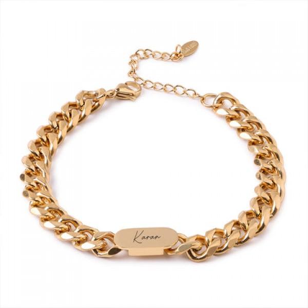 The Personalised Cuban Bracelet inspired by the infinite loops of life is a modern classic. It features cursive engraving with adjustable design along with 22 carat gold plating. Suitable for both men and women, this bracelet can be customized with what means most to you.