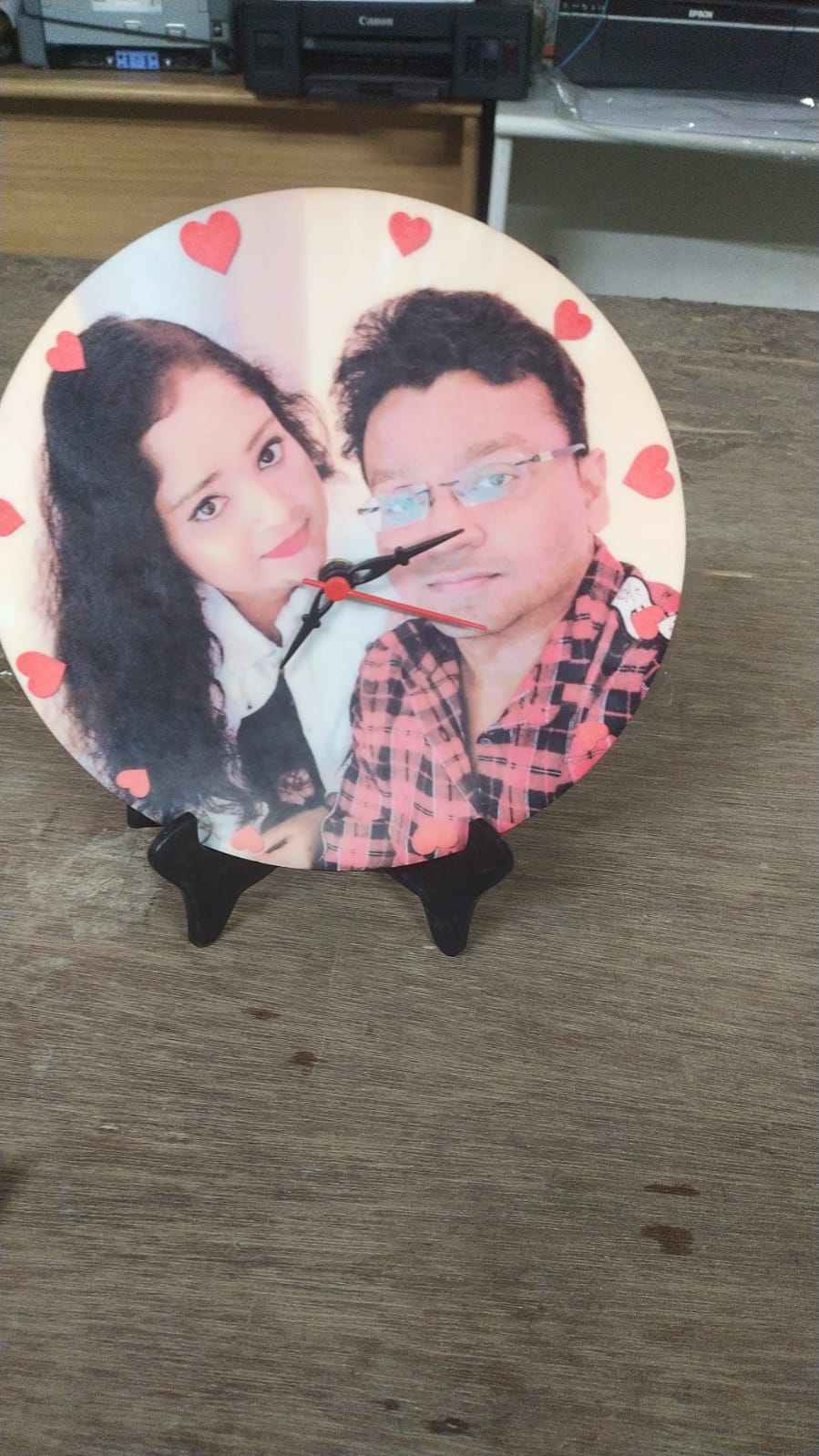 This personalized round-shaped table clock is truly spellbinding, featuring a heart-themed design and resting elegantly on a wooden stand for a classic touch. A perfect gift for someone you admire and love, whether for a birthday, anniversary, or a thoughtful home décor surprise.Note: Please upload a high-resolution photo for the best quality finish.Order now from MyFlowerTree and create a gift that’s both functional and heartfelt!