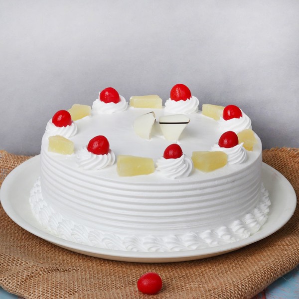 Make every celebration sweeter with this classic Pineapple Cake, loved by kids, adults, and elders alike. Topped with gooey pineapple jelly, freshly-sliced pineapple, and cherries, and covered in soft whipped cream, this luscious delight is a treat for all ages. Perfect for birthdays, anniversaries, family gatherings, housewarmings, or festive celebrations, this cake is sure to win hearts instantly. Send this delicious pineapple cake online and surprise your loved ones with a refreshing burst of flavor and joy.