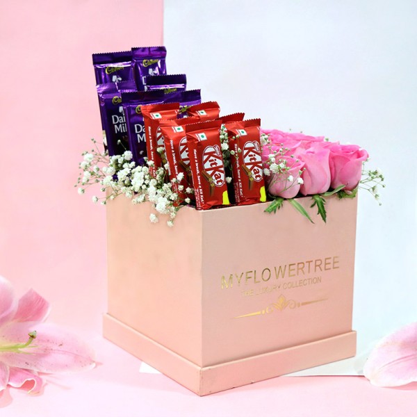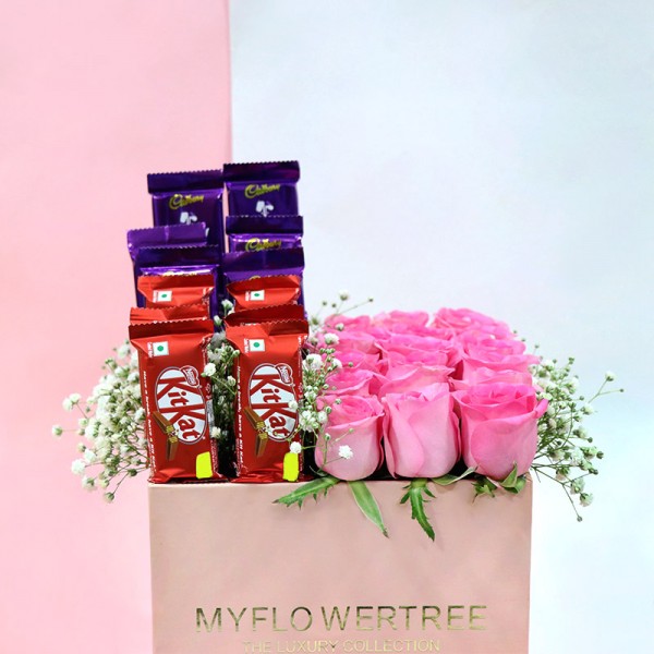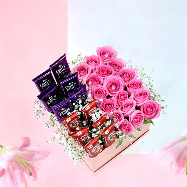 Get ready to express your untold love and affection with a beautiful gift box. Yes, we have an amazing and excellent gift includes a tempting pink roses, dairy milk and kitkat chocolate. Believe it, this Is an outstanding pack to deliver your emotions in a unique way