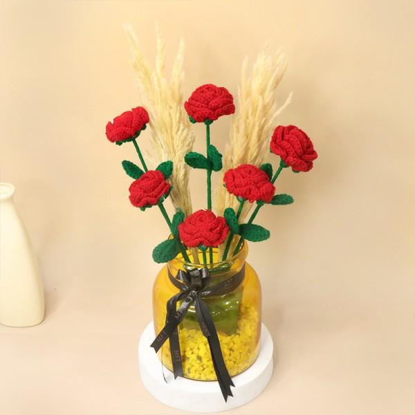 Brighten any room with this cozy crochet flower arrangement, artfully displayed in a decorative vase. Featuring vibrant, handmade blooms, this long-lasting floral piece adds a touch of charm and creativity to your home or office. A sweet gift for any occasion!