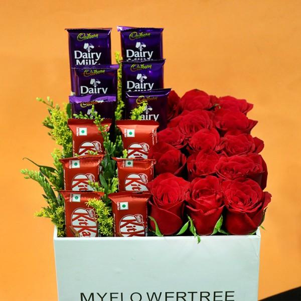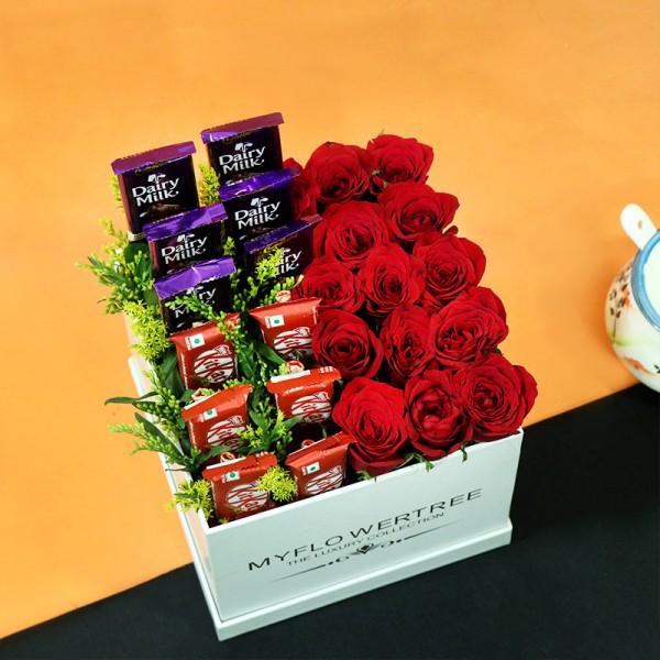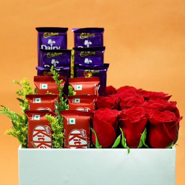 To shower your unconditional love and affection, try out this best and speechless combo ever. This is a pack of signature box contains tempting KitKat chocolate, wow teddy bear and bunch of fresh red roses. Believe it, this amazing box will assist you to open up your heart