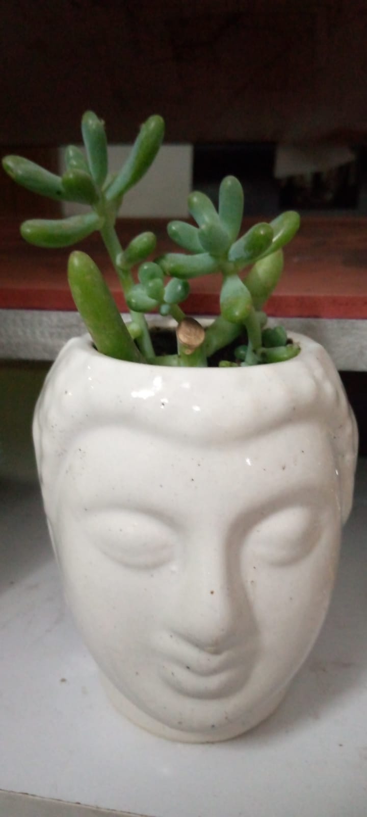 - One Sedum Succulent Plant in Buddha Face Pot