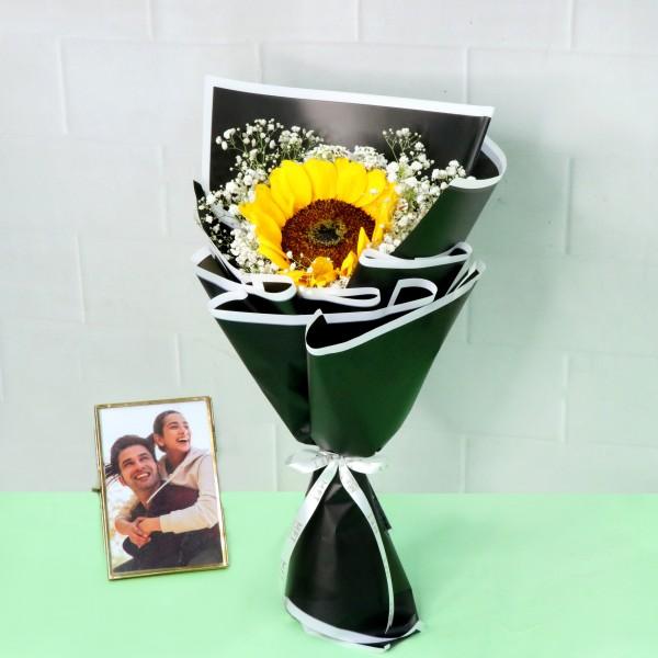 Brighten every celebration with this Sunflower Premium Bouquet. A radiant mix of cheerful sunflowers, delicate daisies, elegant roses, and lush carnations, this luxurious arrangement brings warmth and happiness wherever it goes. Perfect for birthdays, anniversaries, housewarmings, graduations, festive celebrations, or as a ‘just because’ surprise, this vibrant bouquet is a thoughtful way to spread joy and positivity.