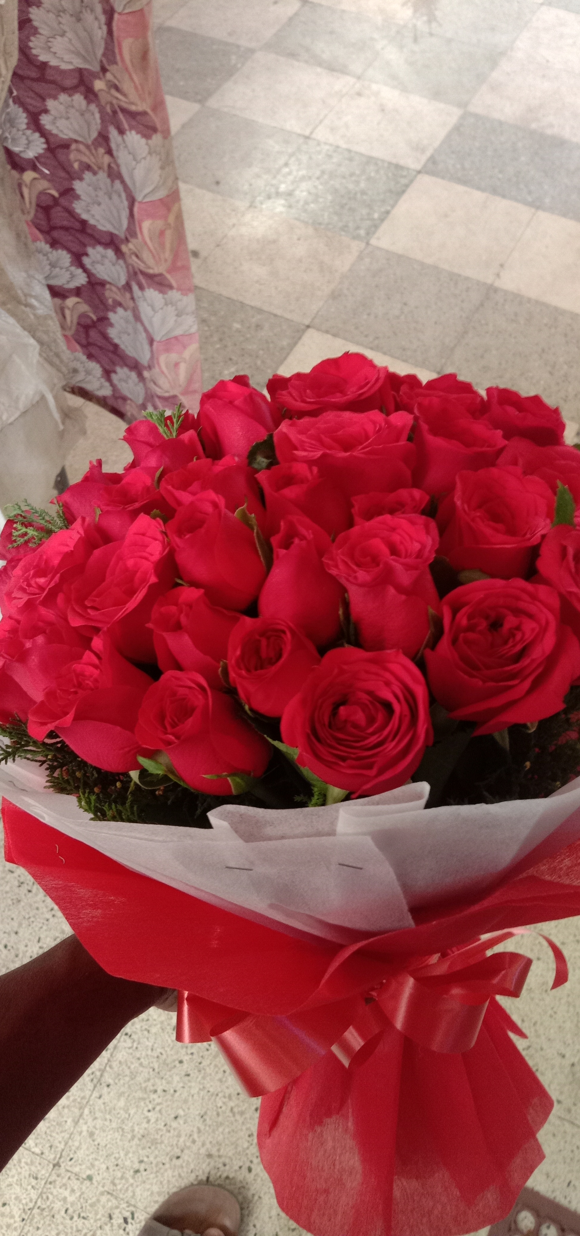 Can anything express love in a more passionate or powerful way than the Red Roses. We don't think so. Gift someone this bouquet of 50 well-blossomed Red Roses in Red and White paper packing along with 2 Cadbury's DairyMilk Silk Chocolates to tell what's in your heart.