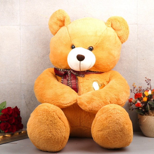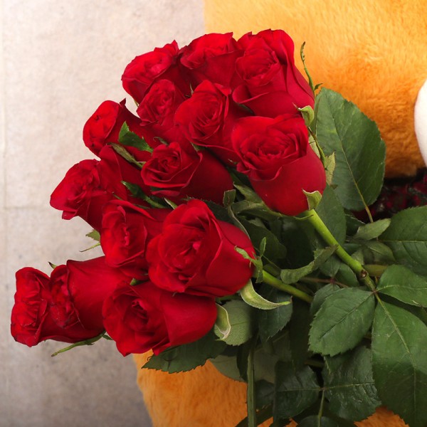 Order this 3 feet teddy bear with fresh red roses for your loved one now!
