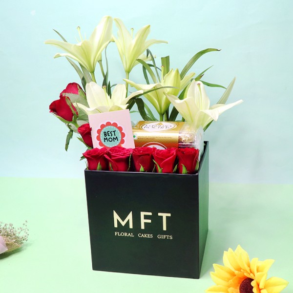 Designed to impress, this premium bouquet is perfect for life's most special moments — from heartfelt celebrations to sophisticated décor. Arranged in a stylish, upscale vessel and finished with elegant touches, every detail speaks of refinement and care