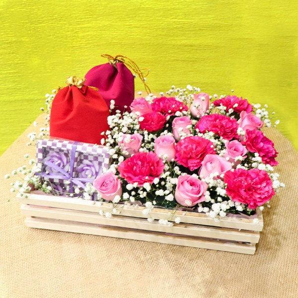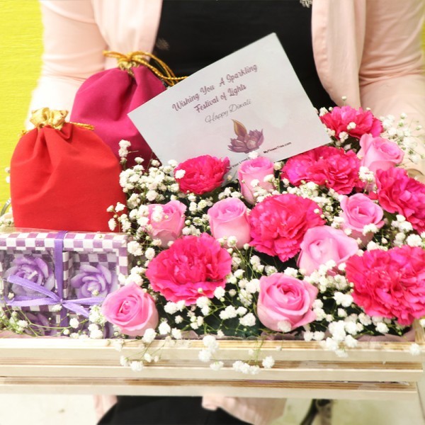 The divine trinity of knowledge, wealth & prosperity comes home in the form of Diwali Hamper. It is a promising & alluring hamper of beautiful roses, cashews, almonds and lavender color candles. A great exchange of good wishes for this festive season!