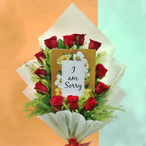 Confess your apology with sincerity and grace. This heartfelt 12 Red Roses bouquet paired with a greeting card is the perfect way to convey your deepest regrets and seek forgiveness. The fresh, fragrant red roses symbolize love, passion, and the earnestness of your feelings, while the thoughtful card adds a personal touch to your message.Ideal for mending misunderstandings, reconciliation, or simply saying "I’m sorry", this bouquet is a beautiful way to bring a little brightness into their life during a difficult moment. Whether it's a birthday, anniversary, or just a special way to show that you care, these roses will help express what words alone cannot.With MyFlowerTree’s reliable online delivery service, including same-day and midnight delivery, your heartfelt gesture will arrive just when needed.